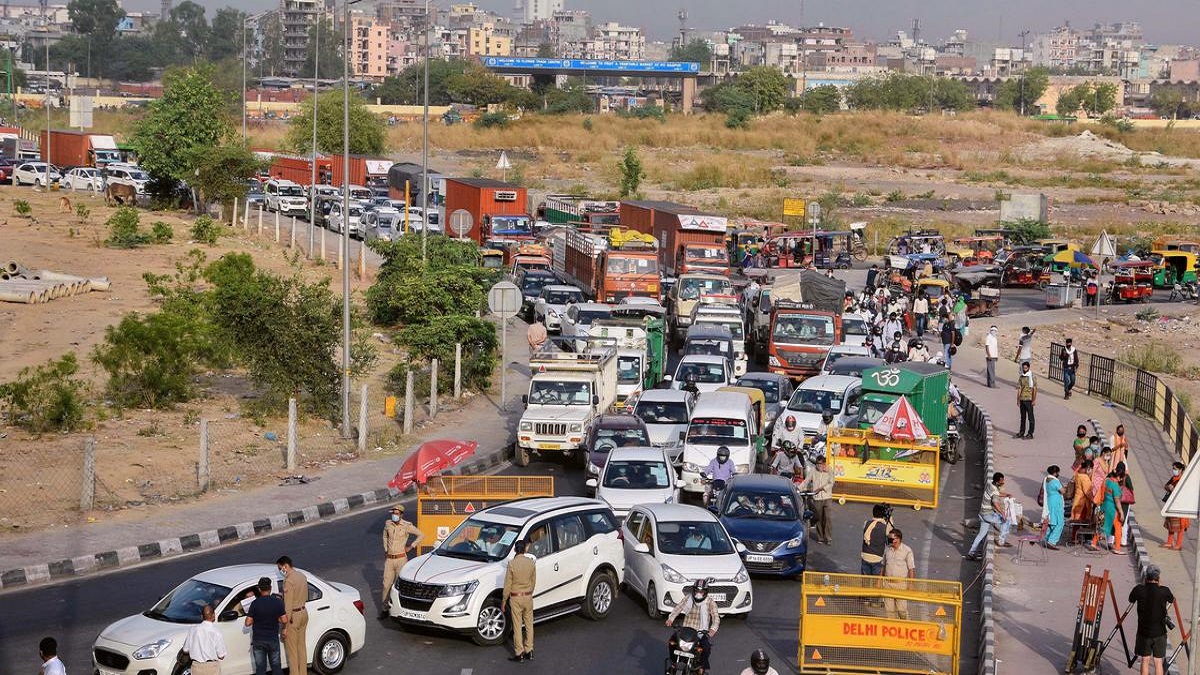 नोएडा-दिल्ली बॉर्डर पर लगा भारी जाम, चेकिंग से धीमी हुई रफ्तार