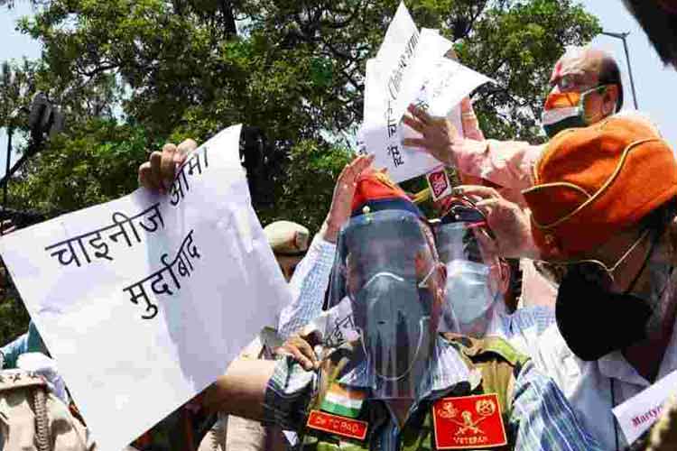 भारतीय सैनिकों के मारे जाने के विरोध में चीनी दूतावास के पास पूर्व सैनिकों का प्रदर्शन