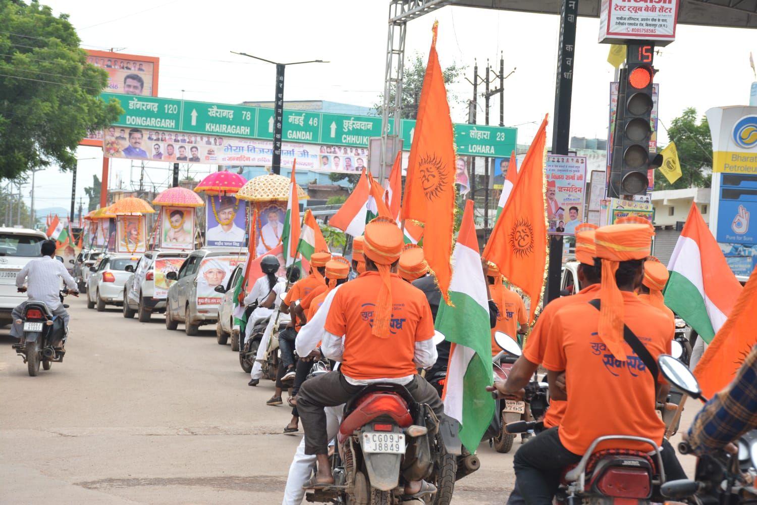 युवा सेवा संघ के सदस्यों द्वारा कवर्धा में निकाली गई भव्य देशभक्ति व संस्कृतिक रक्षा वाहन रैली।
