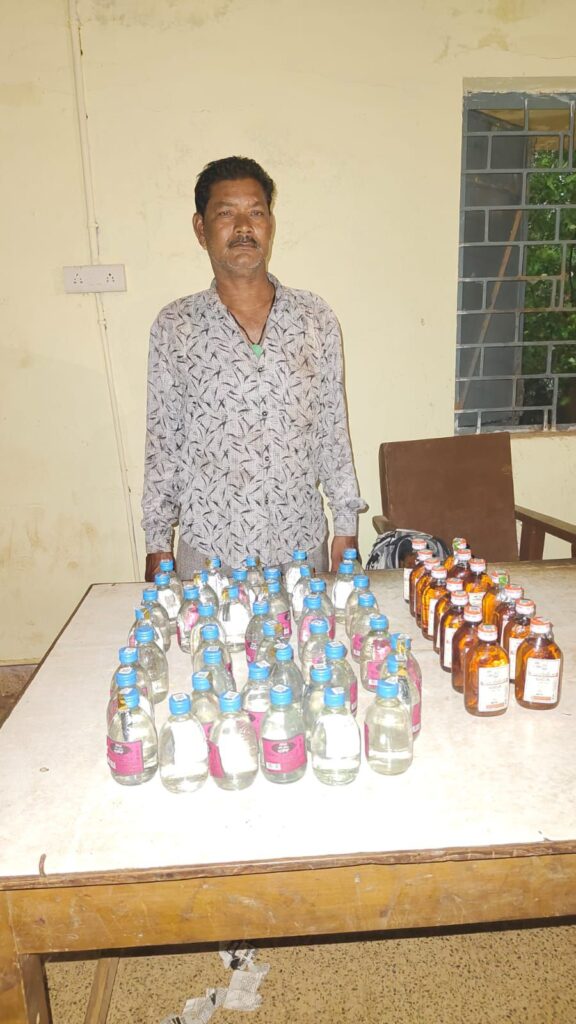 छुईखदान थाना क्षेत्र में एक व्यक्ति अवैध रूप से देशी प्लेन शराब एवं गोवा अंग्रेजी शराब परिवहन करते हुए गिरफ्तार ।