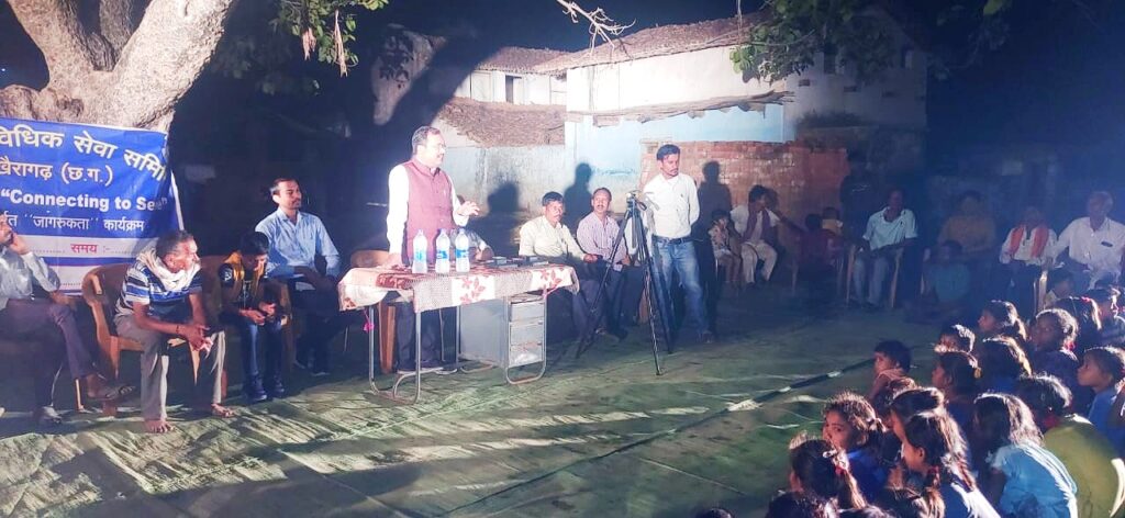 तत्पश्चात पैरा लीगल वालंटियर गोलूदास साहू ने नि:शुल्क विधिक सहायता, नालसा टोल फ्री नंबर 15100, महिला हेल्पलाइन नंबर 181, चाइल्ड हेल्पलाइन नंबर 1098 आदि के संबंध में बताया गया। उक्त कार्यक्रम में सरपंच लीलादास साहू ,उपसरपंच बसंती बाई साहू, रामचंद्र साहू, रामेश्वर साहू, टीमन साहू, धनुष साहू, पीएलवी छविराज लांझकर व बड़ी संख्या में ग्रामीण महिलाएं व बच्चे उपस्थित रहे। कार्यक्रम का संचालन गोलूदाससाहू द्वारा किया गया।