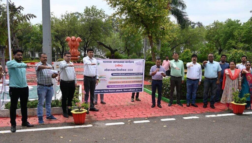 कवर्धा, 19 मार्च 2024। कलेक्टर एवं जिला निर्वाचन अधिकारी श्री जनमेजय महोबे ने आज जिला कार्यालय प्रांगण में आंगनबाड़ी कार्यकर्ता एवं सहायिकाओं को मतदाता जागरूकता की शपथ दिलाकर शत-प्रतिशत मतदान कराने का आव्हान किया। कलेक्टर एवं जिला निर्वाचन अधिकारी श्री महोबे ने कहा कि सभी आंगनबाड़ी कार्यकर्ता एवं सहायिकाएं घर-घर जाकर लोगों को जागरूक करे की वह अपने मताधिकार का अवश्य प्रयोग करें। लोगों को बताएं कि लोकतंत्र में हम सब की जिम्मेदारी है कि हम अपने मताधिकार का प्रयोग करें और अपना वोट जरूर दें। खासकर युवाओं को प्रेरित करने के लिए कहा गया। कलेक्टर ने बताया कि लोकसभा निर्वाचन 2024 का कार्यक्रम प्रभावशील हो गया है। लोकसभा क्षेत्र राजनंदगांव के लिए 26 अप्रैल 2024 शुक्रवार को मतदान किया जाएगा। जिले के सभी नगरी निकाय क्षेत्र एवं ग्रामीण क्षेत्रों में लोगों को जागरूक करने के लिए लगातार प्रयास करने की बात कही गई।