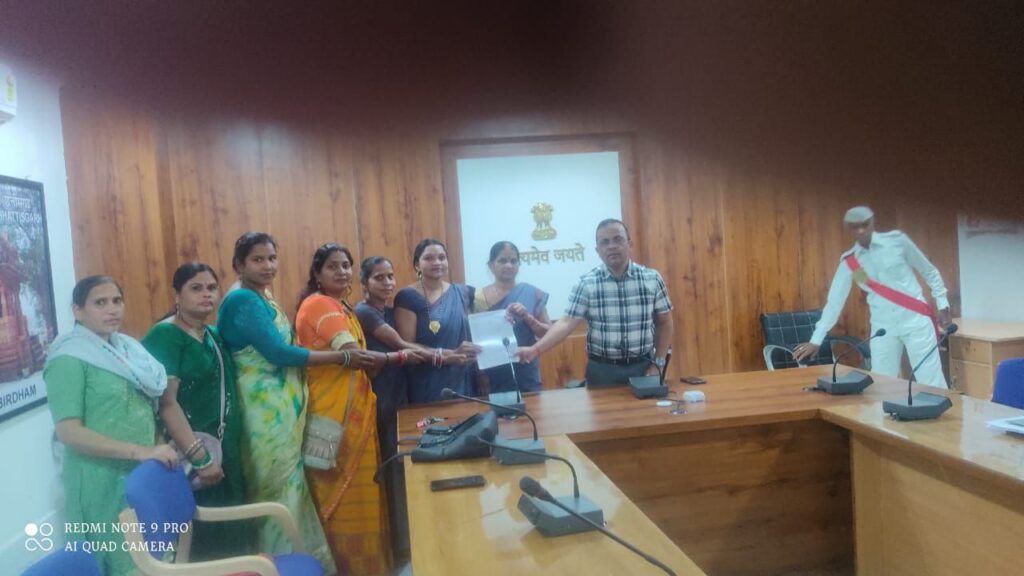 छत्तीसगढ़ जुझारू आंगनबाड़ी कार्यकर्ता सहायिका कल्याण संघ की जिला अध्यक्ष सोनबाई बंजारे , कवर्धा परियोजना अध्यक्ष अंजू अवस्थी लोहारा ब्लॉक अध्यक्ष सीमा पटेल ,सुलोचनी ठाकुर , शकुन चंद्रवंशी ,रानी झरिया ,मीना साहू एवं दीप्ति सेन समस्त आंगनवाड़ी कार्यकर्ता सहायिकाओं द्वारा कलेक्टर के द्वारा प्रधानमंत्री , मुख्यमंत्री,एवं महिला बाल विकास मंत्री के नाम अपने मांगों की पूर्ति हेतु ज्ञापन सोपा गया जिला अध्यक्ष सोनबाई बंजारे ने बताया कि हमारी प्रमुख एक ही मांगी है कि हमें शासकियकर्मचारी घोषित करें, हम एक लाख से अधिक आंगनवाड़ी कार्यकर्ता सहायिका लगातार अपनी शासकीय कर्मचारी बनाने की मांगों को आपके समक्ष मांग कर रहे हैं.