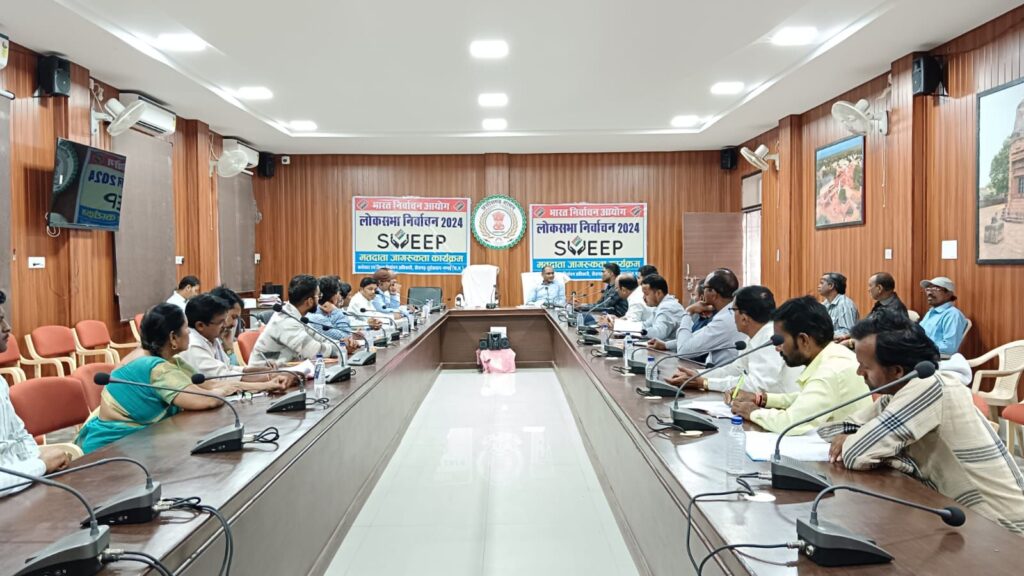 कलेक्टर एवं जिला निर्वाचन अधिकारी चंद्रकांत वर्मा के निर्देशन में अपर कलेक्टर एवं जिला नोडल अधिकारी (प्रशिक्षण) प्रेम कुमार पटेल और उप जिला निर्वाचन अधिकारी श्री सुरेंद्र कुमार ठाकुर द्वारा आगामी लोकसभा निर्वाचन-2024 के लिए आदर्श आचार संहिता लागू होने के दौरान संपत्ति विरुपण कार्य को लेकर कलेक्ट्रेट सभा कक्ष में जिला अधिकारियों की आवश्यक बैठक ली गई।