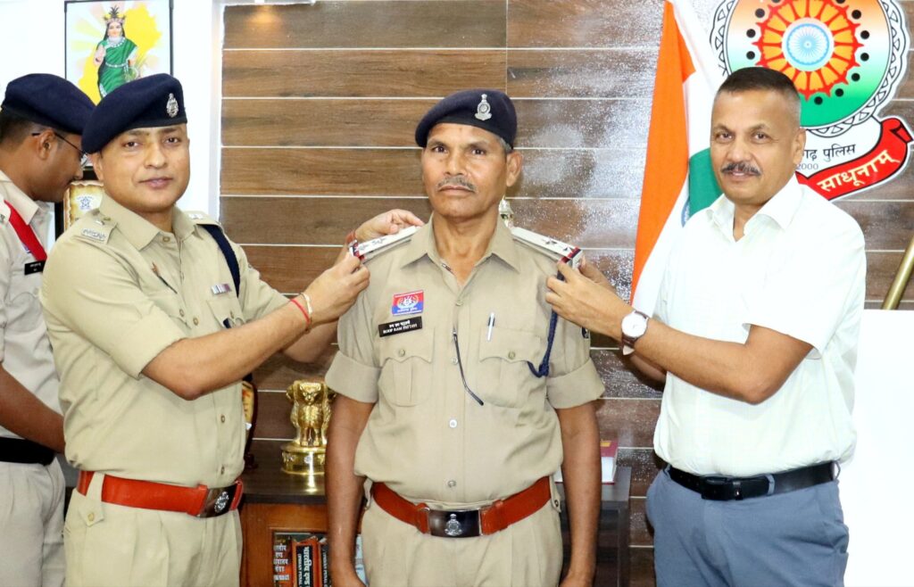 पुलिस अधीक्षक धर्मेंद्र सिंह के द्वारा सहायक उप निरीक्षक को स्टार लगाकर उप निरीक्षक के पद पर पदोन्नति प्रदान किया गया।