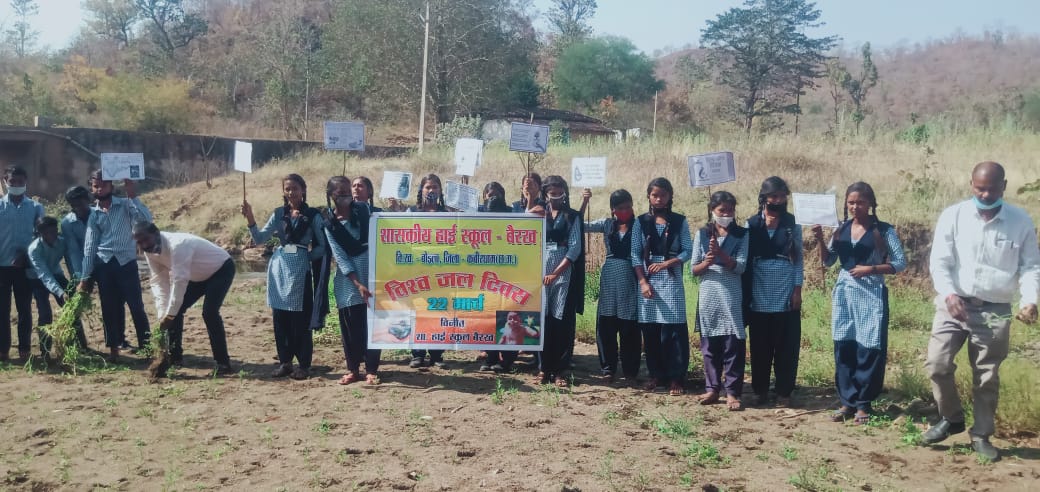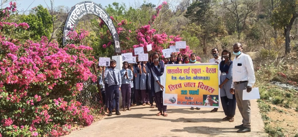 बोड़ला। वनांचल के शासकीय हाई स्कूल बैरख में शिक्षक एवं विद्यार्थियों द्वारा गाँव में रैली के माध्यम से जल के प्रति जागरूकता, नारे के साथ ” जल है तो, कल है ” के साथ गाँव के फोक नदी में जा कर सफाई कर, विद्यार्थियों एवं लोगों को जल दिवस के महत्व को बताया ।