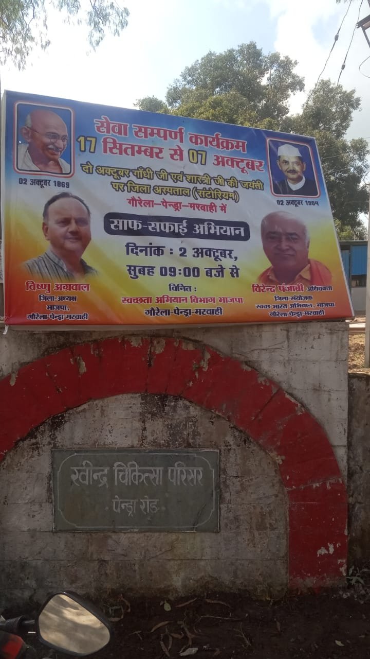 भारतीय जनता पार्टी जिला गौरेला पेंड्रा मरवाही ने बनाया गांधी दिवस एवं लाल बहादुर शास्त्री की जयंती जिसमें सेवा ही समर्पण अभियान को लेकर जिला चिकित्सालय में संपूर्ण स्वच्छता अभियान