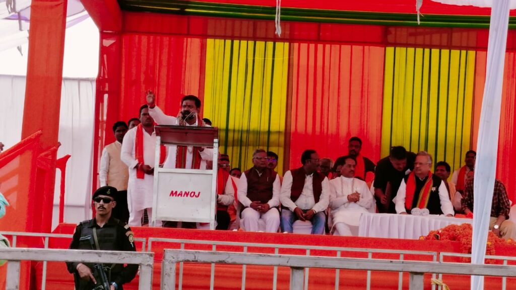 सभा में संबोधित करते हुए श्री सिंह ने कहा कि भूपेश रामगमन पथ की बात करने वाले लोग ही मानपुर के गांव में मां दुर्गा की प्रतिमा को जलाते हैं, उन्होंने कहा कि भूपेश को राम-राम इसलिए याद आते है, क्योंकि सामने चुनाव है। उन्होंने कहा कि राम की कहानी काल्पनिक है,इसी कोर्ट में शपथ पत्र देने वाली पार्टी के लोग और ऐसी सरकार के मुखिया जिनके पिताजी रावण को मानते हो, आज राम जी की बात करके लोगों को धोखा दे रहे हैं, और यहां बैठे सभी कार्यकर्ता तथा जनता जानती है की भूपेश की कथनी और करनी में कितना अंतर है, उन्होंने कहा कि जिस तरह से मां सीता को रावण भगवा वस्त्र पहनकर साधु के वेश में हरण कर ले गया उसी तरह भूपेश रूप बदलकर यहां छत्तीसगढ़ के लोकतंत्र और आदिवासी संस्कृति का हरण करना चाहता है, परंतु जनता समझदार है वह सब जानती है। श्री सिंह ने कहा कि केंद्र की मोदी सरकार मे अनुसूचित जाति एवं जनजाति वर्ग तथा पिछड़ों का खास ख्याल रखा। केंद्रीय मंत्री मंडल मे 60 प्रतिशत से अधिक प्रतिनिधित्व दिया । प्रधानमंत्री श्रम योगी मान धन योजना के तहत 29 करोड़ लोग लाभांवित हुए । जीवन ज्योति बीमा योजना से लाखों करोड़ो परिवार बरबाद होने से बचे। महिलाओं को कोविड महामारी के समय सीधे आर्थिक मदद प्रदान की । मनरेगा के तहत लाखों परिवारों को रोजगार उपलब्ध कराया । उज्ज्वला योजना से महिलाओं को मुफ्त गैस सिलेंडर दिया ।