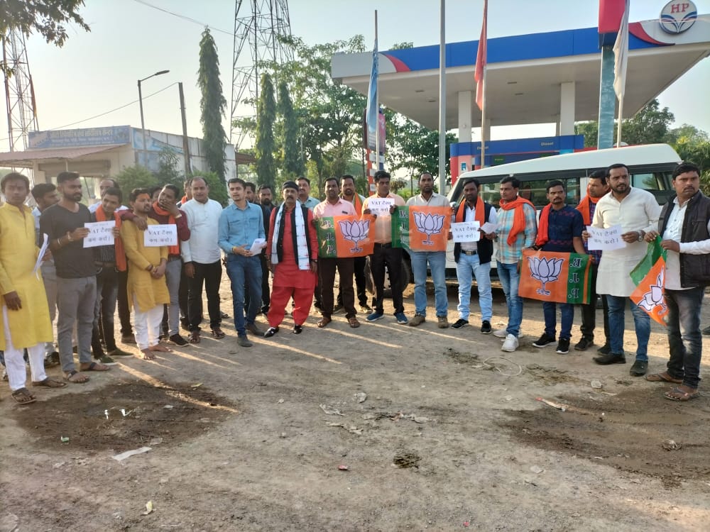 भारतीय जनता युवा मोर्चा के कार्यकर्ताओं ने पेट्रोल पंप के बाहर आज वैट की कमी को लेकर प्रदर्शन किया और जनता को बताया कि छत्तीसगढ़ की सरकार छत्तीसगढ़ की जनता पर वैट के नाम पर कितना भारी बोझ डाल रही है,