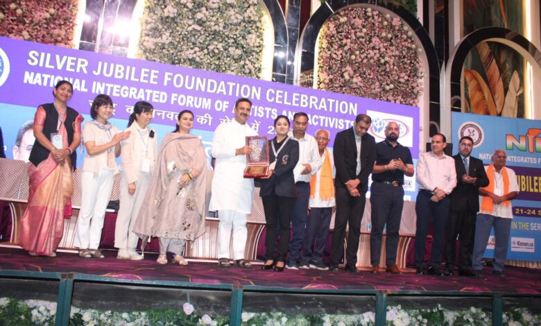 भारत मण्डपम दिल्ली व करनाल में तीन दिवसीय नेशनल इंटीग्रेटेड फोरम ऑफ़ आर्टिस्ट एक्टिविस्ट “निफ़ा” सिल्वर जुबली के भव्य समारोह ( 21 से 24 सितम्बर 2025 ) में महामहिम राष्ट्रपति मॉरीशस के प्रतिनिधि, जापान, दुबई, इंग्लैंड, कैनेडा,सहित विभिन्न देशों से आऐ प्रतिनिधियों , सर्व श्री प्रीतपाल सिंह जी चेयरमैन निफ़ा, हरविंदर कल्याण , अध्यक्ष , हरियाणा विधानसभा, संजय पंजवानी वर्ल्ड रिकॉर्ड ऑफ़ एक्सीलेंस इंग्लैंड , मंगल दूबे , डायरेक्टर , इण्डो रशिया कल्चरल सोसाइटी , पराग गप्पा सुवा जन सेवक इंक यूथ प्रेसिडेंट , स्वामी प्रेम मूर्ति जी मानव सेवा संघ प्रमुख ,डॉ लाजपत राय चौधरी मुख्य संरक्षक ,डॉ अंजू सिंह महारानी सिंगरा मोउ जौनपुर उत्तर प्रदेश ,संदीप सिंह दुबई ,हरियाणा विधायक व अन्य मंत्रीगण, सेलिब्रिटी द्वारा यह सम्मान प्रदान किया गया ।