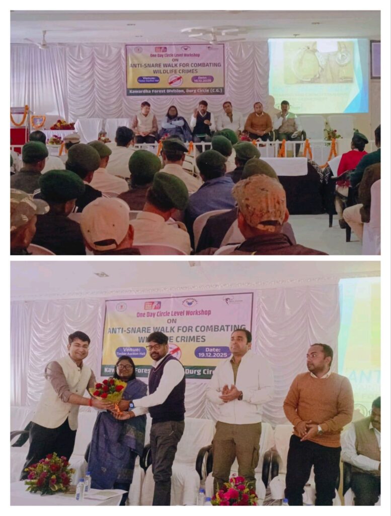 कवर्धा। वन्यप्राणियों की सुरक्षा सुनिश्चित करने एवं अवैध शिकार पर प्रभावी नियंत्रण के उद्देश्य से “एंटी स्नेयर वॉक फॉर कम्बेटिंग वाईल्डलाइफ क्राईम” विषय पर वृत्त स्तरीय एक दिवसीय कार्यशाला का आयोजन आज दिनांक 19.12.2025 को काष्ठागार सभागार, कवर्धा में किया गया।