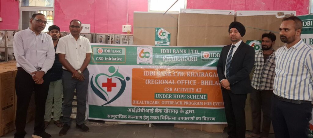 खैरागढ़ : आईडीबीआई बैंक खैरागढ़ द्वारा ‘होप’ कार्यक्रम के अंतर्गत कॉर्पोरेट सामाजिक उत्तरदायित्व (CSR) के तहत शासकीय सिविल अस्पताल खैरागढ़ को विभिन्न चिकित्सा उपकरण एवं सामग्री प्रदान की गई। इस पहल का उद्देश्य ग्रामीण क्षेत्र में स्वास्थ्य सेवाओं को बेहतर बनाना और अस्पतालों को आवश्यक संसाधन उपलब्ध कराना है।