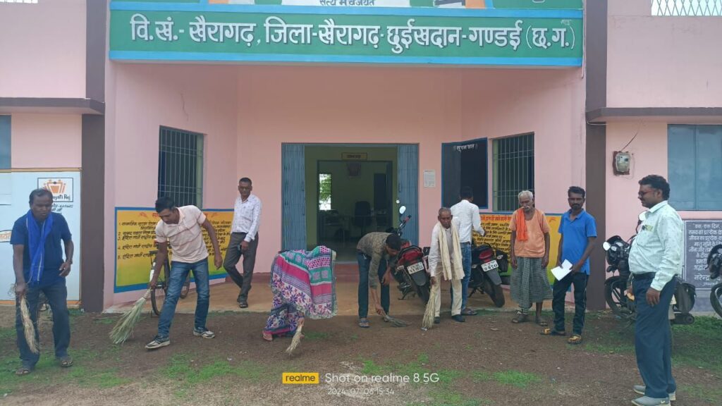 खैरागढ़ 07 जुलाई 2024// जिला कलेक्टर चंद्रकांत वर्मा के निर्देशन06 एवम परियोजना निर्देशक, जिला ग्रामीण विकास प्रशासन प्रेम कुमार पटेल के मार्गदर्शन मे जिला खैरागढ़ – छुईखदान – गंडई को ओ.डी.एफ. प्लस मॉडल का बनाने हेतु ग्राम स्तर पर स्वच्छता अभियान मे पंचायत,स्कूल आंगनवाड़ी एवं ग्राम के प्रमुख स्थलों मे जनसंहभागिता के माध्यम से सफाई किया जा रहा है, जिससे स्थानीय स्तर पर जनसमुदाय मे स्वच्छता के प्रति व्यवहार परिवर्तन हो। इसी कड़ी मे शनिवार को जनपद पंचायत खैरागढ़ के 65 ग्राम पंचायतो सीईओ के अगुवाई मे साफ सफाई अभियान चलाया गया इस अभियान मे ग्राम पंचायतो के सरपंच,सचिव, पंच, शिक्षक, आंगनवाड़ी कार्यकता, स्वच्छग्राही समूह एवं सबसे अधिक भूमिका बिहान योजना के महिला समूहों