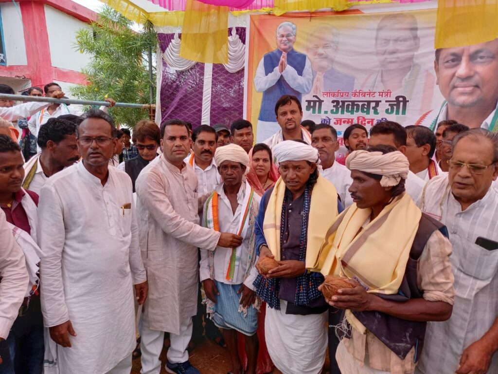 इस अवसर पर छत्तीसगढ़ की खुशहाली के लिए बुजुर्गों किसानों एवं बैगा भाइयों द्वारा कैबिनेट मंत्री मोहम्मद अकबर को स्वस्थ्य एवं दीर्घायु रहने की कामना किए साथ ही ब्लॉक कांग्रेस कमेटी के द्वारा बैगा आदिवासी भाइयों को श्रीफल नारियल एवं साल से भेंट कर उनका सम्मान किया गया एवं महिलाओं को साड़ी एवं नरिया श्रीफल से भेंट कर उनका सम्मानित किया गया एवं बैगा आदिवासी भाइयों को गमछा भेंट कर सभी का सम्मान करके कैबिनेट मंत्री का जन्मदिन के अवसर पर वृक्षारोपण कार्य किया गया।