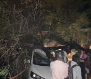 कवर्धा रोड पंडरिया में हुआ ख़तरनाक हादसा चलती कार के ऊपर गिरा पेड़।
