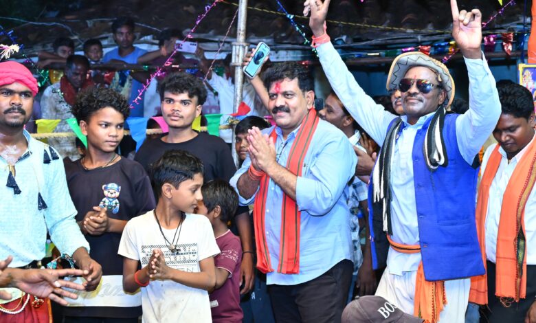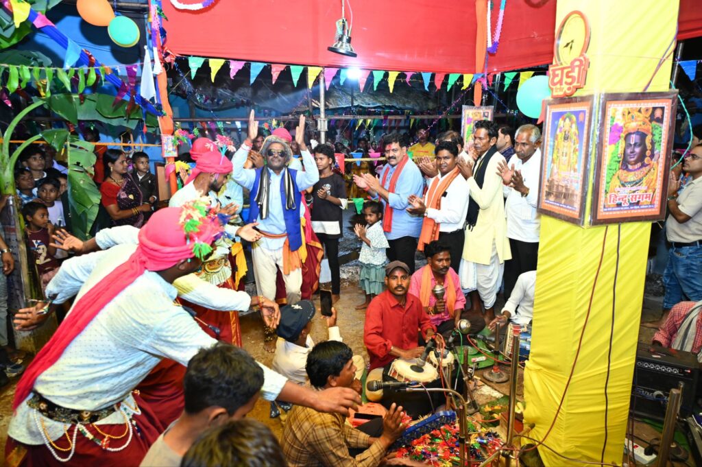 उपमुख्यमंत्री विजय शर्मा ग्राम बदराडीह बाघूटोला, खुर्सीपार, जैताटोला में आयोजित रामधुनी कार्यक्रमों में शामिल हुए