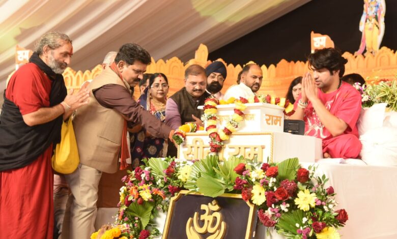 हनुमंत कथा के चौथे दिवस उप मुख्यमंत्री विजय शर्मा हुए शामिल, पं. धीरेंद्र शास्त्री से लिया आशीर्वाद