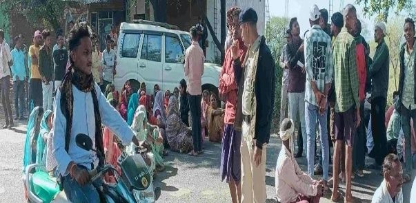 सड़क जाम कर धरने पर बैठे प्रदर्शनकारी
