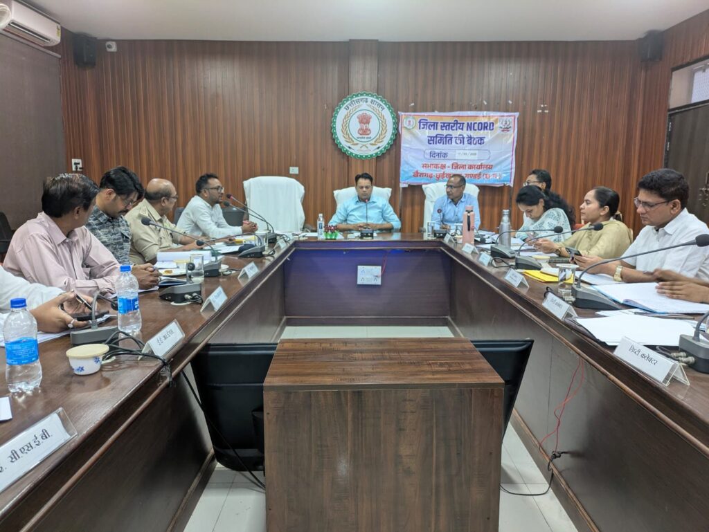 खैरागढ़ : जिले में मादक पदार्थों के अवैध व्यापार पर प्रभावी नियंत्रण के उद्देश्य से गठित नार्को कोऑर्डिनेशन (NCORD) जिला स्तरीय समिति की बैठक कलेक्टर इंद्रजीत सिंह चंद्रवाल की अध्यक्षता में आज कलेक्ट्रेट सभा कक्ष में सम्पन्न हुई। बैठक में विभिन्न विभागों के अधिकारियों की उपस्थिति में नशे के विरुद्ध ठोस, समन्वित एवं प्रभावी कार्रवाई को लेकर महत्वपूर्ण निर्णय लिए गए।