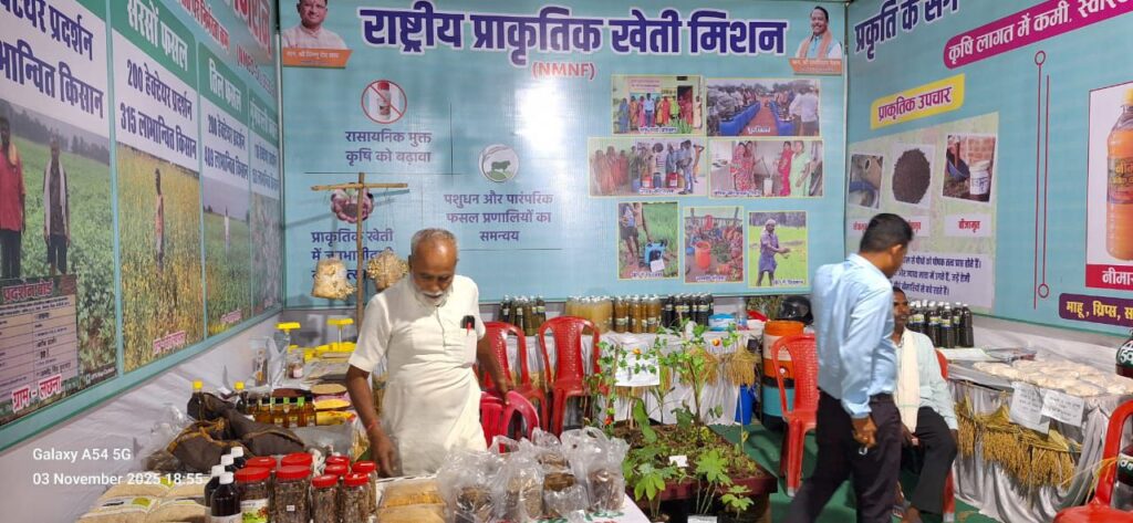 साथ ही परम्परागत कृषि विकास योजना एवं राष्ट्रीय प्राकृतिक खेती मिशन के अंतर्गत 880 हेक्टेयर में प्राकृतिक खेती का प्रदर्शन किया गया है, जिससे 1571 कृषक लाभ पा रहे हैं। प्रदर्शनी में महिला स्वयं सहायता समूहों द्वारा तैयार किए गए जैविक उत्पाद — नोमास्त्र, ब्रह्मास्त्र, अग्नास्त्र, जीवामृत व बीजामृत भी आकर्षण का केंद्र रहे।