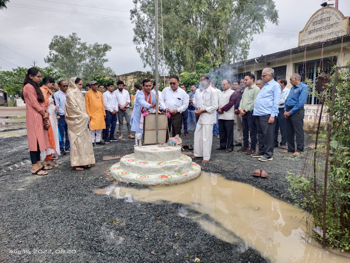 सुप्रभात के मधुर बेला पर जनपद पंचायत पंडरिया में बड़े ही धूम धाम और उत्साह के साथ पंडरिया जनपद अध्यक्ष ने ध्वजारोहण कर देश के आन बान शान तिरंगा को सलामी दी आजादी के मतवाले वीर जवानों के तैल चित्र में पुष्प अर्पित कर श्रद्धा सुमन नमन वंदन किया पंडरिया जनपद अध्यक्ष समुंद सेवाराम कुर्रे ने सभी जनों को छत्तीसगढ़ मुख्यमंत्री वचन संदेश पत्र को पढ़कर सभी को सुनाया। तथा इस वर्ष पूरे भारतवर्ष में माननीय प्रधानमंत्री नरेंद्र मोदी जी के आवाहन पर आजादी का अमृत महोत्सव आजादी का 75 वर्ष पूर्ण होने पर बड़े ही धूमधाम और हर्ष के साथ हर घर तिरंगा घर-घर तिरंगा अभियान के साथ आज पूरे भारतवर्ष में बड़े ही धूमधाम से हम सब ने मनाए हैं मैं नमन करती हूं हमारे देश उन वीर जवानों को जिन्होंने अपने प्राण की आहुति देकर इस भारतवर्ष को आजाद कराया अब हमारा कर्तव्य बनता है अपने हर कार्य को ईमानदारी के साथ करें और देश हित में हम सब अपना योगदान दे हर व्यक्ति अपने कार्य को ईमानदारी से करें जन जन का कल्याण हो ऐसा काम हम सब को करना चाहिए राष्ट्रभक्ति के सम्मान में हम सबको हमेशा तत्पर रहना चाहिए स्वतंत्रता दिवस के समस्त क्षेत्रवासियों अधिकारी कर्मचारियों आप सभी का अभिनंदन स्वागत और हार्दिक शुभकामनाएं करती हूं आज की ध्वजारोहण के गरिमा में कार्यक्रम में श्री नरेंद्र शर्मा सीईओ एवं पंडरिया जनपद परिवार सभी जनप्रतिनिधि गण समस्त कर्मचारी और अधिकारी गण पंडरिया जनपद क्षेत्र के समस्त नागरिक गण इस ध्वजारोहण कार्यक्रम में उपस्थित रहे।