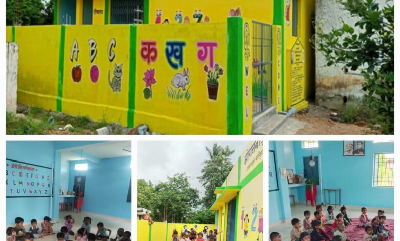 शिक्षा, स्वास्थ्य और पोषण की आवश्यकता को पूर्ण करता अभिसरण से निर्मित आंगनबाड़ी भवन