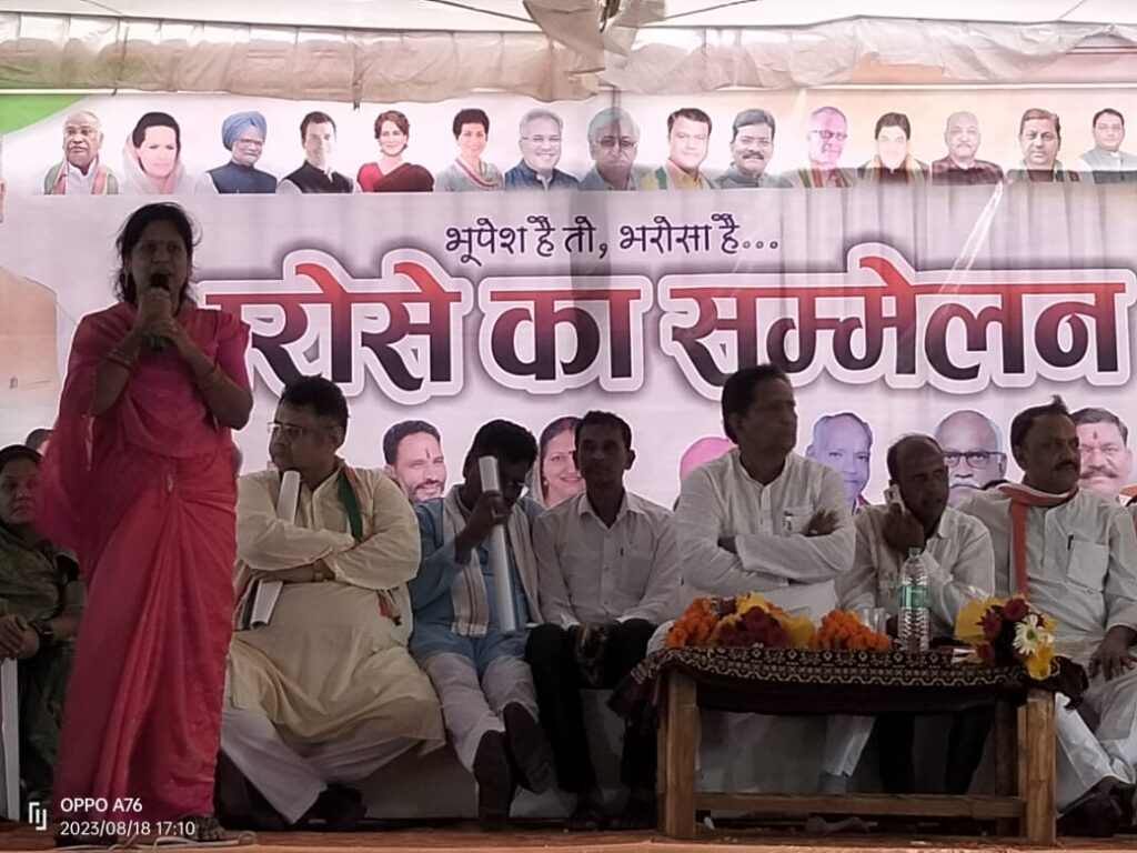 यशोदा निलांबर वर्मा ने अपनी उद्बोधन पर कही की भूपेश सरकार सर्वहारा मजदूर किसान गांव गरीब यूवा महिला कर्मचारी अधिकारी सबके हित में काम कर रही है । राजीव गांधी न्याय योजना गो धन न्याय योजना, राजीव यूवा मितान क्लब, छत्तीसगढ़ की संस्कृति संस्कार हरेली तीजा पोरा दीपावली जैसे त्योहारों को सहजने का काम किया है ।भाजपा वालों को चैलेंज किया की पंद्रह साल में किसानों को धोखा दिया डांटा इंट्री ऑपरेटरों की नौकरी छीनी अब अपने भांजे को टिकट दिला रहा है ।जो खैरागढ़ में बाईपास रोड का मांग करके अपने जमीन का 14 करोड़ का मुआवजा प्राप्त कर लिया है अब उस पैसे से चूनाव की तैयारी कर रहा है ।बाईपास का कोई औचित्य नहीं है है सिर्फ अपने स्वार्थ की राजनीति किया है ।उसे चुनाव में सबक सिखाने की बात कही है ।