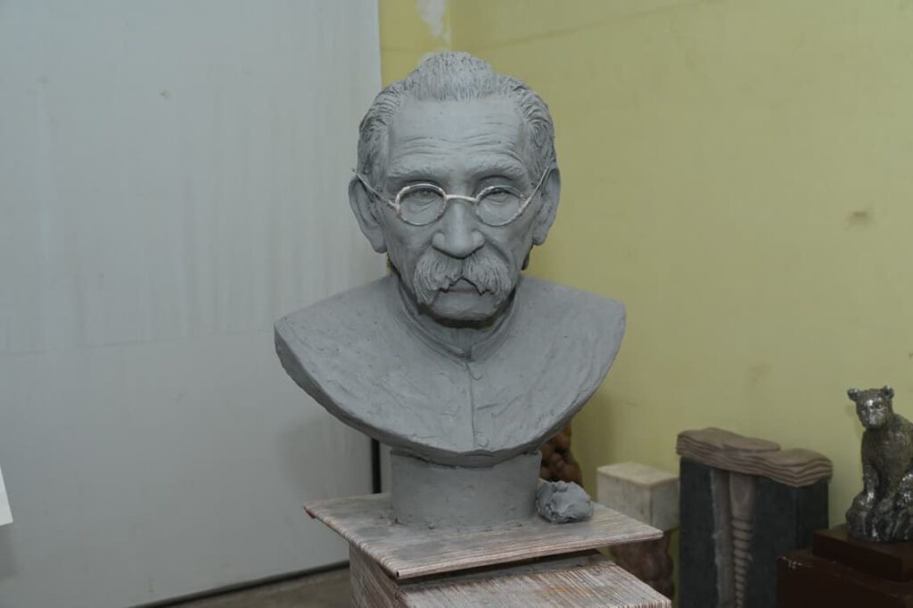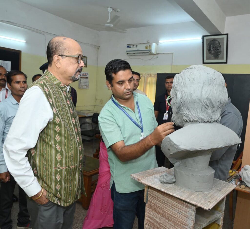 खैरागढ़ 26 अगस्त 2025// इन्दिरा कला संगीत विश्वविद्यालय खैरागढ़ के मूर्तिकला विभाग में निर्माणाधीन असम के प्रसिद्ध साहित्यकार रघुनाथ चौधरी की प्रतिमा का राज्यपाल ने अवलोकन किया। गेस्ट हाउस में अधिकारियों से चर्चा पश्चात राज्यपाल मूर्तिकला विभाग पहुंचे जहां साहित्यकार रघुनाथ चौधरी की प्रतिमा के प्रारंभिक निर्माण (मिट्टी से बने ढांचे) का अवलोकन किया। प्रतिमा के प्रारंभिक निर्माण को देखकर राज्यपाल प्रसन्न हुए और कांस्य प्रतिमा निर्माण के लिए आगे की कार्यवाही शुरू करने की अनुमति प्रदान की।