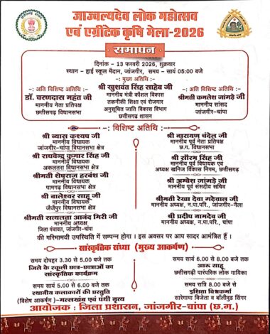 जाज्वल्यदेव लोक महोत्सव एवं एग्रीटेक कृषि मेला 2026 का भव्य समापन 13 फरवरी को