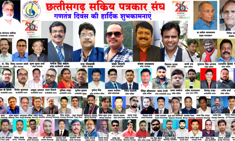 छत्तीसगढ़ सक्रिय पत्रकार संघ की ओर से गणतंत्र दिवस की हार्दिक बधाई एवं शुभकामनाएं।