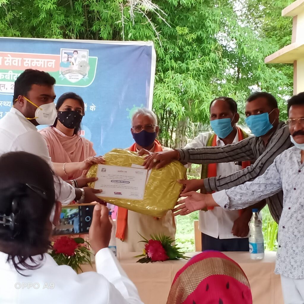 कोविड-19 महामारी के दौरान जनसेवा हेतु उत्कृष्ट कार्य करने के लिए स्वास्थ्य के क्षेत्र में कोरोना योद्धा के रूप में देश हित में बहुमूल्य योगदान देने के लिए आज श्रीमती भावना बोहरा समाजसेवी ने कुकदुर के स्वास्थ्य विभाग के सभी कर्मचारियों कोरोना योद्धा सेवा सम्मान दिया जिसमें फिल्ड वर्कर एवं अस्पताल स्टाफ शामिल हैं। उन्होंने सभी कोरोना वारियर्स को प्रशस्ति पत्र एवं भेंट प्रदान करते हुए उद्बोधन में कहा कि अपने मजबूत इरादों से आपने सबसे कठिन समय में जिस समर्पण के साथ दूसरों के जीवन को सुरक्षित रखने हेतु जो सेवा कार्य किया है, उसके लिए पूरा देश आपके जज्बे को सलाम करता है। इस अवसर पर डॉ.स्वपनिल साधू, डॉ प्रसंगिना साधू, श्वेता सोनी आर.एम.ए. सहित स्वास्थ्य कर्मचारीगण एवं संजय जैन,कृष्णा कुंभकार,बसंत बाटिया,दीपक सलूजा, दशरथ कुम्भकार, रतिराम भट्ट, दिलिप शर्मा, हरे कृष्ण शुक्ला सहित अन्य वरिष्ठ नागरिकगण उपस्थित रहे।