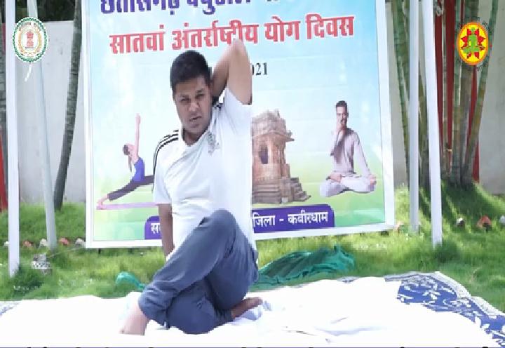 कवर्धा : सातवां अंतर्राष्ट्रीय योग दिवस 21 जून के अवसर पर आज कबीरधाम जिले में उत्साहपूर्ण वातावरण में योगाभ्यास किया गया। वर्चुअल योगाभ्यास और सोशल डिस्टेसिंग के साथ योगाभ्यास किया गया। पंडरिया विधायक ममता चंद्राकर, नगर पालिका अध्यक्ष ऋषि शर्मा, कलेक्टर रमेश कुमार शर्मा, पुलिस अधीक्षक शलभ सिन्हा और जिला पंचायत सीईओ विजय दयाराम के. सहित समस्त अधिकारी, कर्मचारी और गणमान्य नागरिकों ने आज अंतर्राष्ट्रीय योग दिवस पर अपने निवास में विभिन्न अलग-अलग मुद्राओं में योगाभ्यास किया।