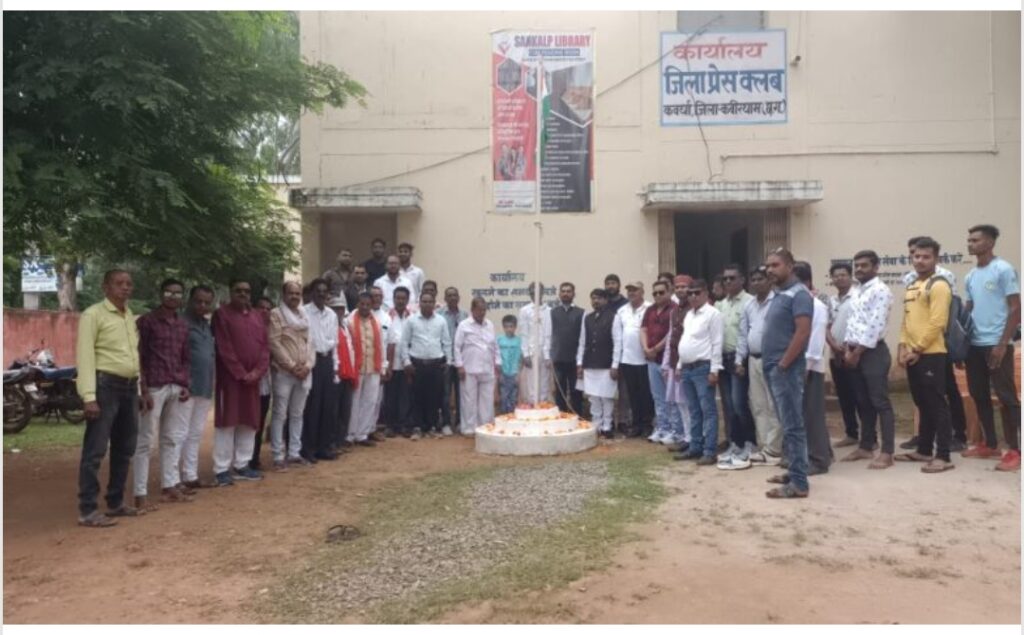 कवर्धा:- 77 वा ध्वजारोहण किया जिला प्रेस क्लब कवर्धा अध्यक्ष प्रकाश वर्मा।