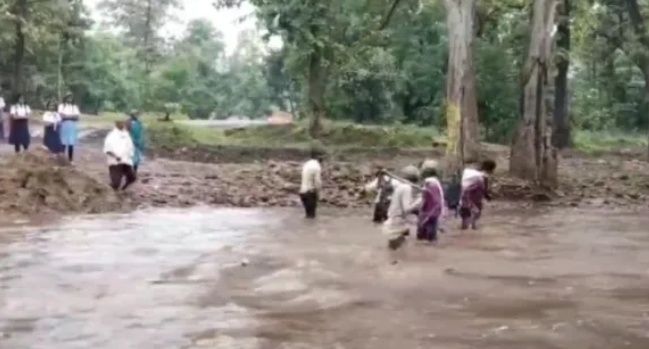 स्कूली बच्चे और ग्रामीणों के नदी पार करने का वीडियो सोशल मीडिया पर वायरल हो गया है। स्थानीय लोगों का कहना है कि हर साल बारिश के मौसम में यही समस्या दोहराई जाती है। अगर जल्द स्थायी समाधान नहीं निकाला गया, तो किसी बड़ी दुर्घटना से इंकार नहीं किया जा सकता।