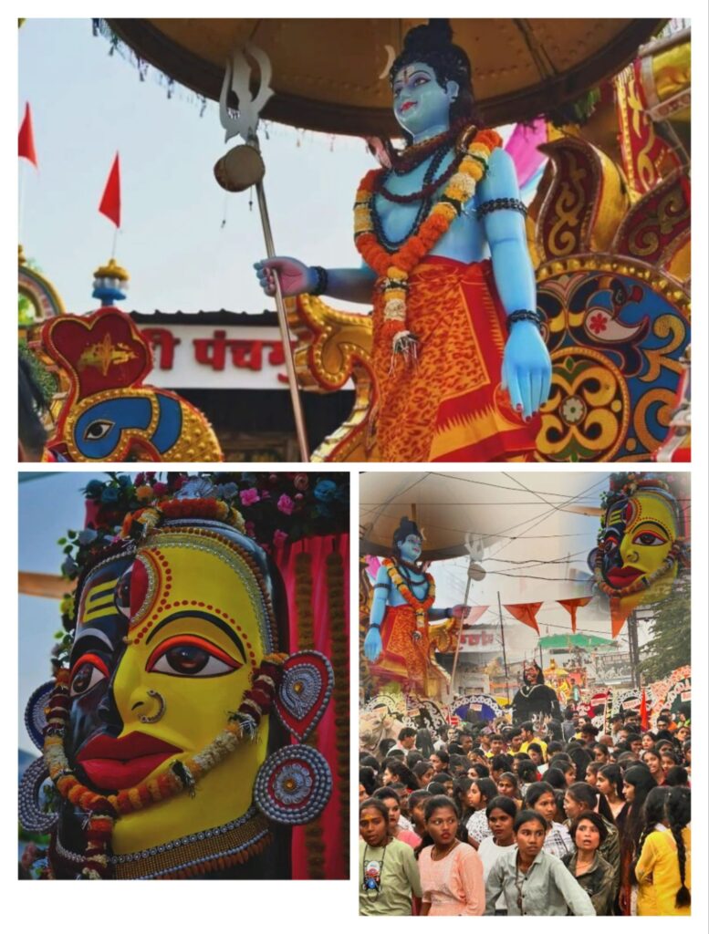 बाबा श्री महाकाल भक्त मंडल द्वारा आयोजित इस कार्यक्रम में रथ पर सवार भोलेनाथ उनके पीछे देवी देवताओं की झांकी,भूत प्रेत,बाघ की झांकी,प्रारम्परिक नृत्य टोलियां,डीजे धुमाल पर झूमते हजारों श्रद्धालुओं की संख्या देखकर हर कोई स्वमेव शिवभक्ति में झूम उठा।