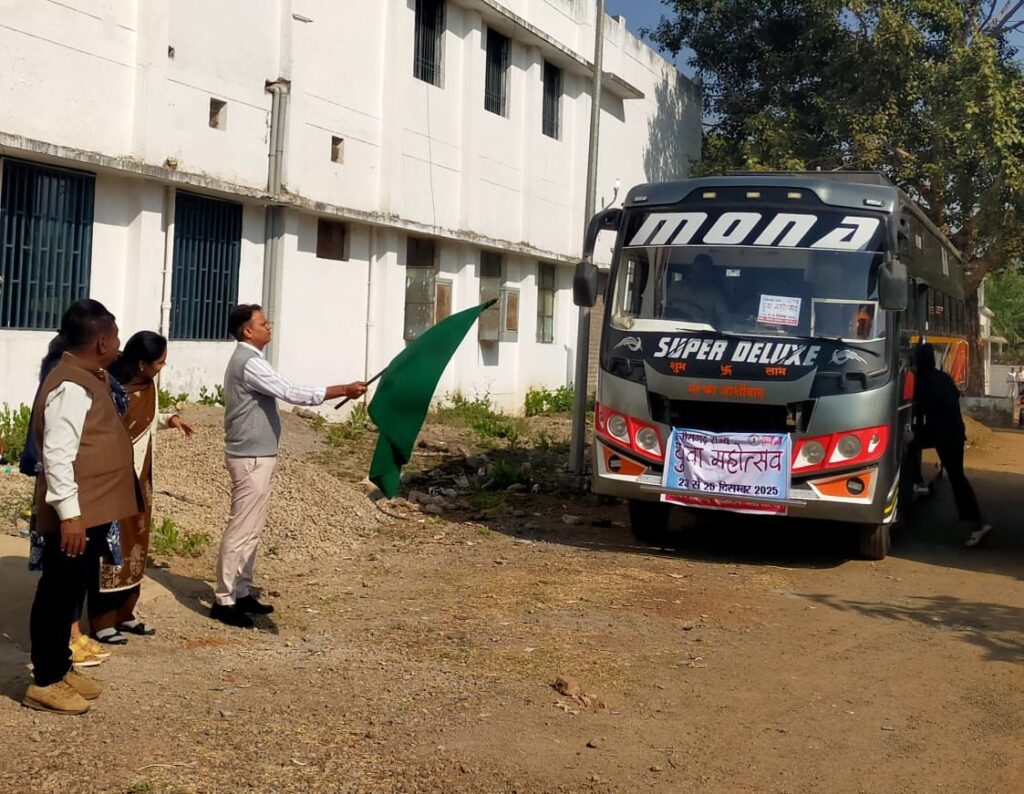 खैरागढ़ : जिले की चयनित युवा प्रतिभाओं की टीम 23 से 25 दिसंबर 2025 तक बिलासपुर में आयोजित राज्य स्तरीय युवा महोत्सव में सहभागिता हेतु रवाना हुई। टीम को कलेक्टर इंद्रजीत सिंह चंद्रवाल, संयुक्त कलेक्टर सुमन राज एवं डिप्टी कलेक्टर पूजा पिंचे ने शुभकामनाएं देते हुए हरी झंडी दिखाकर रवाना किया।