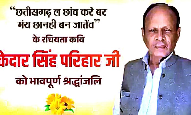 निधन की खबर से स्तब्ध – स्वर्गीय केदार सिंह परिहार के स्वास्थ्य के विषय में मेरे मित्र एवं परिवारिक भाइयों के माध्यम से जानकारी मिलते रहती थी । स्वास्थ्य ठीक नहीं था, आज उनके निधन की खबर ने छत्तीसगढ़ के उनके प्रशंसक और शुभचिंतकों को स्तब्ध कर दिया ।