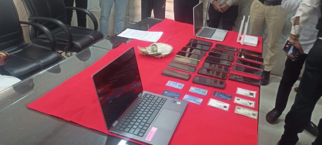 नगदी रकम 22000 रू एवं बैंक खतों में 91175 रूपये कुल 113175 रू नगद, 19 नग मोबाईल फोन, 02 नग लैपटाप, 03 नग एटीएम कार्ड, 01 नग वाई फाई राउटर, 14 नग सिम कार्ड जुमला कीमती 498175 रुपए ।