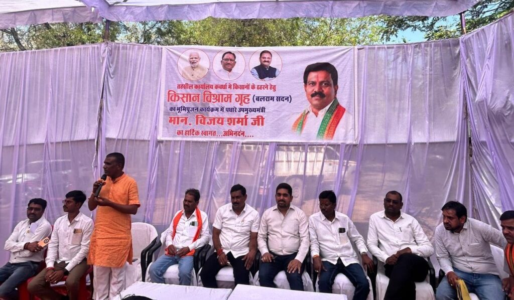 कवर्धा-तहसील कार्यालय परिसर में अब किसान विश्राम गृह बलराम सदन का निर्माण होगा। उप मुख्यमंत्री विजय शर्मा की सोंच व मंशानुरूप किसानों की पीड़ा को समझते हुए अब उनके लिए कबीरधाम जिले के सभी तहसीलों में अत्याधुनिक किसान विश्राम गृह का निर्माण किया जायेगा। किसान विश्राम गृह को बलराम सदन के नाम से जाना जायेगा। आज तहसील कार्यालय परिसर में छत्तीसगढ़ शासन के उप मुख्यमंत्री विजय शर्मा के मार्गदर्शन में उपस्थिति जनप्रतिनिधियों ने किसान विश्राम गृह का भूमिपूजन किया।