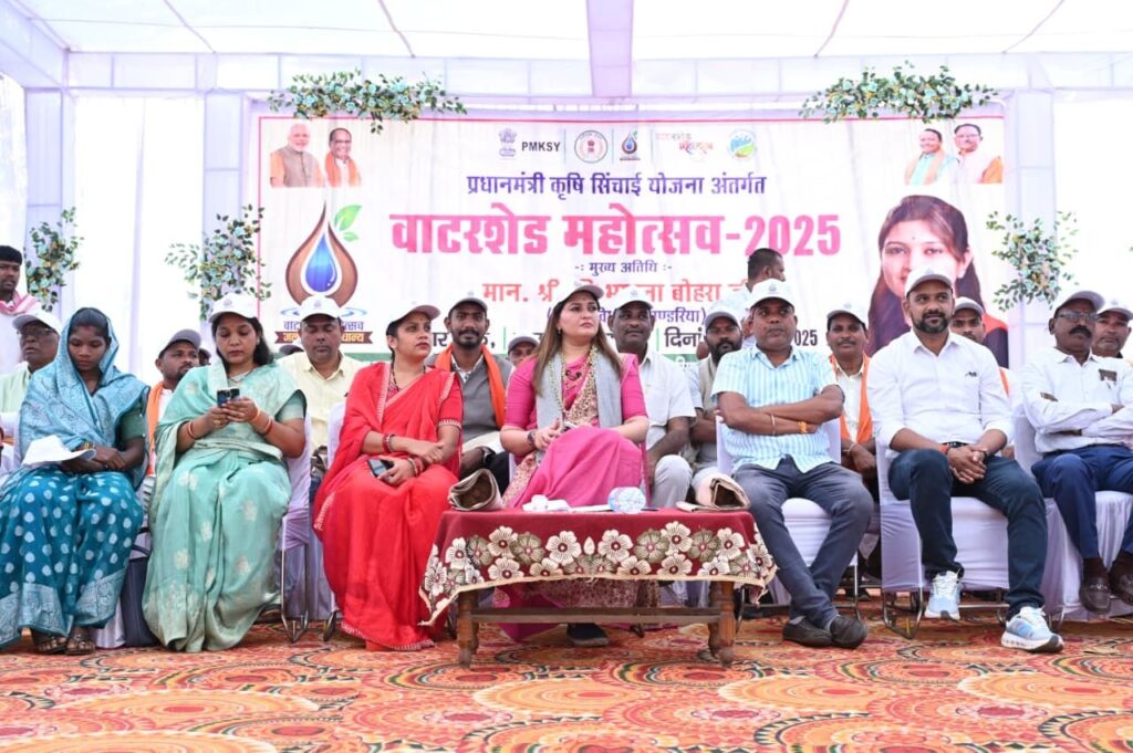 उन्होंने आगे कहा कि प्रधानमंत्री श्री नरेंद्र मोदी जी के नेतृत्व में केंद्र सरकार किसानों की आय दोगुनी करने और ग्रामीण अर्थव्यवस्था को मजबूत बनाने के लिए व्यापक स्तर पर कार्य कर रही है। प्रधानमंत्री कृषि सिंचाई योजना (PMKSY) इसी दृष्टि का मजबूत आधार है, जिसका मूल उद्देश्य हर खेत को पानी,जल का संरक्षण,सिंचाई सुविधा का विस्तार,वर्षा जल संचयन व भू-जल संवर्धन को बढ़ावा देना। आज जिन विकास कार्यों एवं परियोजनाओं का लोकार्पण एवं भूमिपूजन किया गया है उससे किसानों को खेतों में सिंचाई के बेहतर साधन उपलब्ध होंगे। वर्षा जल का संचयन बढ़ेगा जिससे सालभर पानी की उपलब्धता रहेगी। भूमि का कटाव रुकेगा और मिट्टी की उपजाऊ शक्ति बढ़ेगी। भू-जल स्तर में सुधार होगा, जिससे खेती में स्थिरता आएगी।सूखा प्रभावित क्षेत्रों को राहत मिलेगी और फसल उत्पादन में बढ़ोतरी होगी और इन कार्यों से सीधा फायदा किसानों और ग्रामीणों की आजीविका पर पड़ेगा, साथ ही कृषि आधारित अर्थव्यवस्था और मजबूत होगी। यह महोत्सव न केवल जागरूकता का माध्यम है, बल्कि ग्रामीण विकास और किसानों की समृद्धि का आधार भी है।