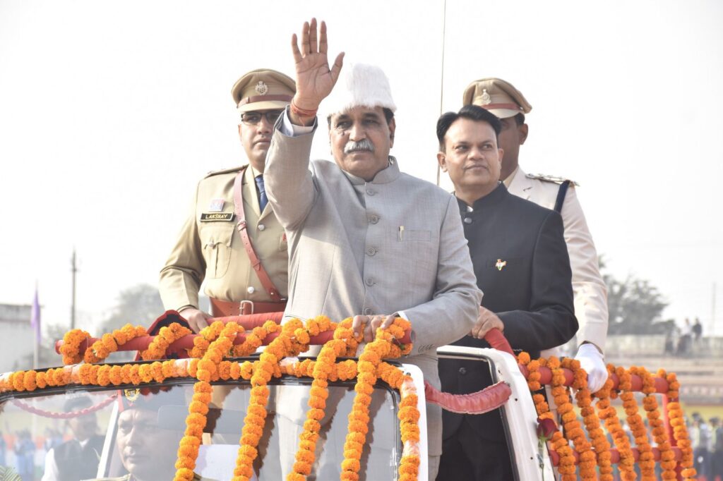 खैरागढ़ : 77वें गणतंत्र दिवस के अवसर पर जिला मुख्यालय खैरागढ़ स्थित राजा फतेह सिंह खेल मैदान में आयोजित मुख्य समारोह में मुख्य अतिथि रायपुर नगर पश्चिम विधायक राजेश मुणत ने राष्ट्रीय ध्वज फहराया और तिरंगे को सलामी दी। इसके पश्चात विधायक श्री मुणत, कलेक्टर इंद्रजीत सिंह चंद्रवाल एवं पुलिस अधीक्षक लक्ष्य शर्मा ने परेड का निरीक्षण किया। सशस्त्र जवानों द्वारा हर्ष फायर कर राष्ट्रपति का जयघोष किया गया।