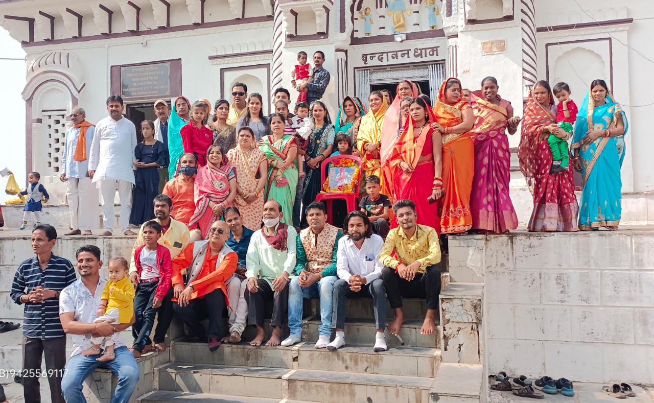 मंदिर पहुचकर वहाँ श्री बिट्ठल जी व श्री शिरोमणि संत नामदेव जी के तेल चित्र की पूजन के साथ वहाँ स्थित श्री गणेश जी व श्री हनुमानजी के पूजन के बाद भगवान श्री राधा कृष्ण जी के सामने 56 भोग एव वस्त्र के साथ वहां के पुजारी ने मन्त्रोच्चारण के साथ सभी सामाजिक सदस्यो के द्वारा पूजन करने के पश्चात 1 घण्टे का कीर्तन भजन का कार्यक्रम हुआ