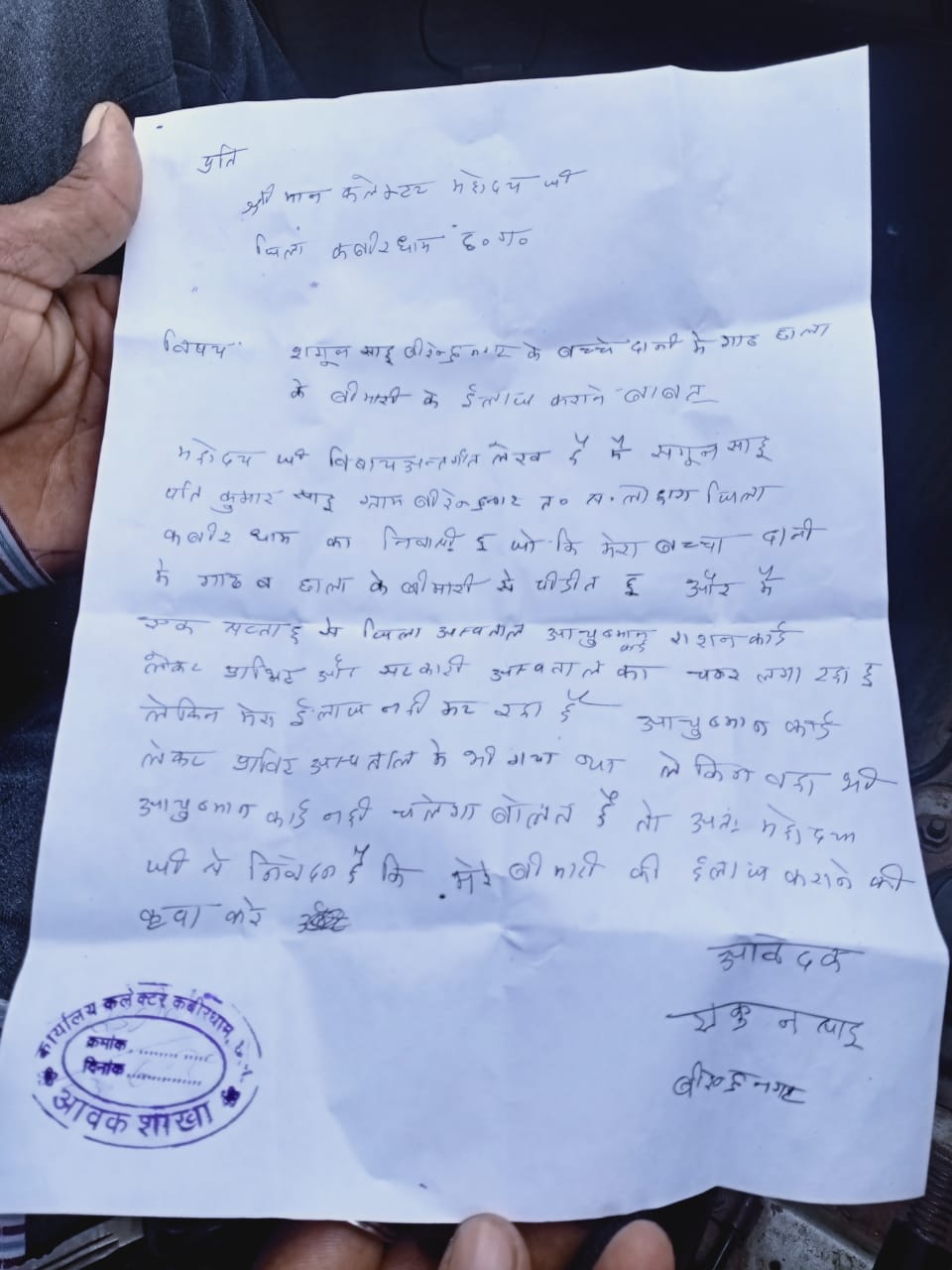 इलाज कराने के लिए कलेक्टर को लगाई गुहार विकासखंड लोहारा अंतर्गत ग्राम वीरेंद्र नगर के निवासी सगुन बाई साहू पति कुमार साहू बच्चेदानी की गांठ और छाले के बीमारी से पीड़ित है आयुष्मान कार्ड लेकर और राशन कार्ड लेकर इलाज कराने गया बीमारी से पीड़ित शगुन साहू ने जिला अस्पताल में भी इलाज कराने गया लेकिन वहां भी उनका नहीं सुना गया प्राइवेट अस्पताल में आयुष्मान कार्ड नहीं चलेगा बोल दिया इसी संदर्भ में कलेक्टर महोदय को गुहार लगाई है आयुष्मान कार्ड से किस बीमारी का इलाज होता है और कौन प्राइवेट अस्पताल चिन्ह अंकित है इसी संदर्भ बीमारी से पीड़ित शगुन साहू ने कलेक्टर को गुहार लगाई उसे 1 हफ्ते से लौटा दिया रहा है गरीबों के कल्याण हेतु आयुष्मान कार्ड बनाया गया है लेकिन गरीबों के लिए कोई काम का नहीं रहा