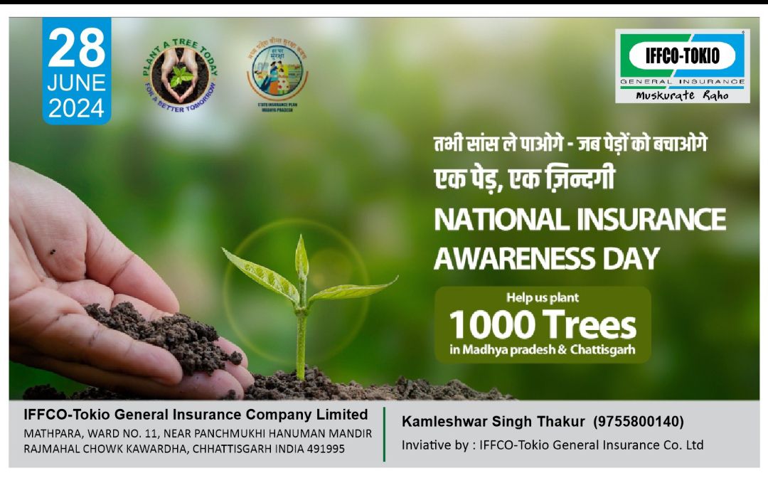 इफको टोकियो जनरल इंश्योरेंस कंपनी की भिलाई शाखा के अन्तर्गत “कवर्धा ई बी के” के तत्वाधान में “राष्ट्रीय बीमा जागरूकता दिवस” के अवसर पर कलेक्ट्रेट परिसर में “पौधारोपण कार्यक्रम” टीम हरितिमा के सहयोग से आयोजित किया गया.