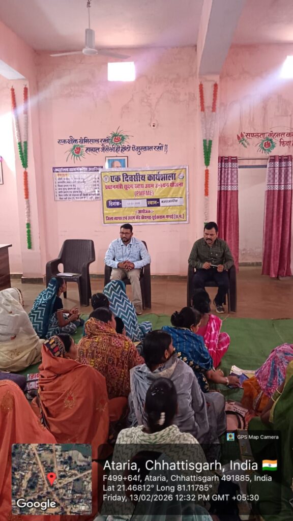खैरागढ़-छुईखदान-गंडई जिले के बाजार अतरिया में दिनांक 13 फरवरी 2026 को प्रधानमंत्री सूक्ष्म खाद्य उद्यम उन्नयन योजना (PMFME) के अंतर्गत एक दिवसीय जागरूकता कार्यशाला का आयोजन किया गया। इस कार्यशाला का आयोजन जिला व्यापार एवं उद्योग केन्द्र (DIC) द्वारा किया गया।