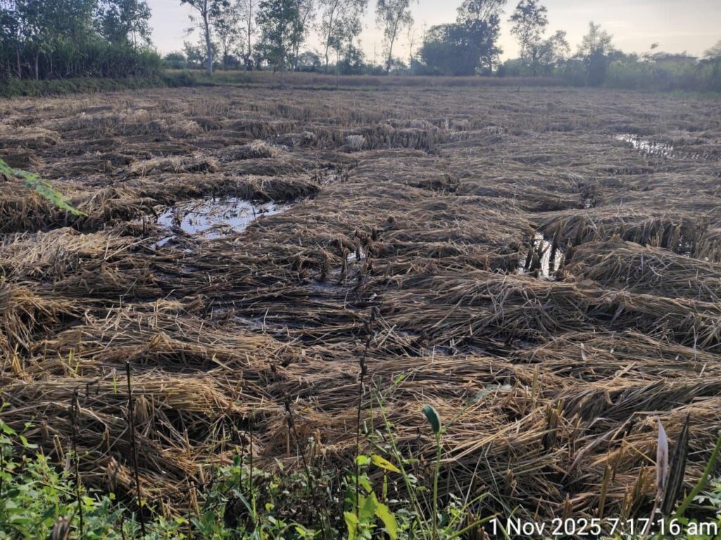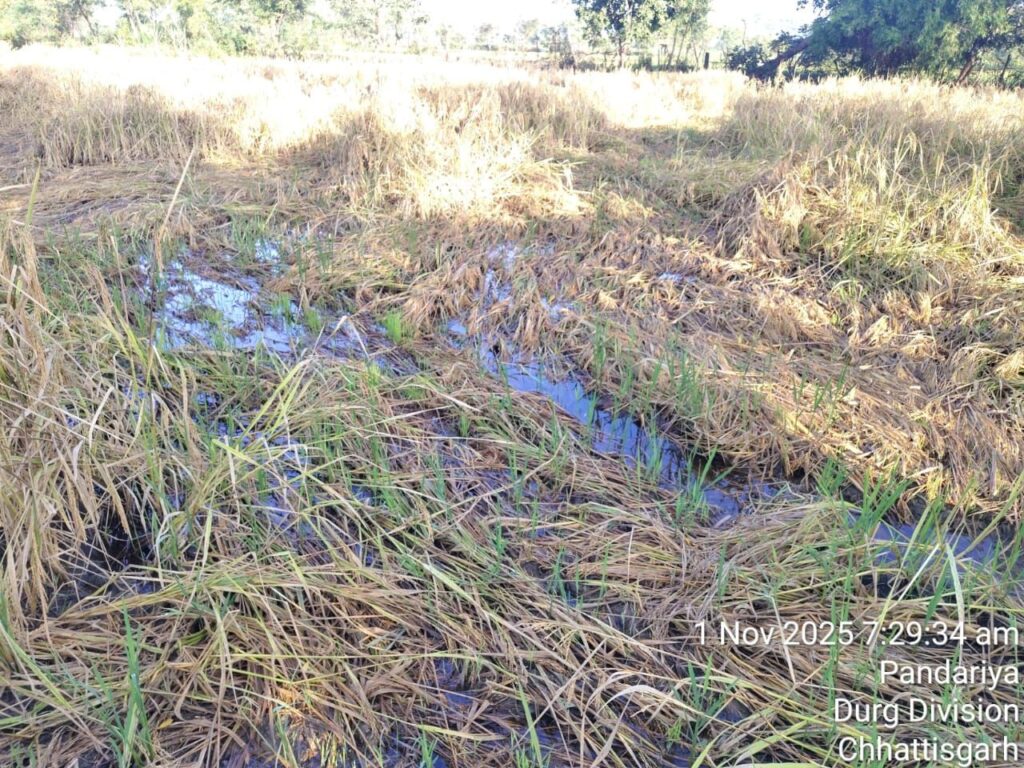 टीकम निर्मलकर AP न्यूज़ पंडरिया : चक्रवात मोन्था के असर से छत्तीसगढ़ के कई जिलों में हुई लगातार बारिश ने किसानों की मेहनत पर पानी फेर दिया है। शुक्रवार को कवर्धा और पंडरिया में हुई तेज बारिश से खेतों में पहले से कटी हुई फसलें पूरी तरह बर्बाद हो गईं। फसलें डूबने और सड़ने से निराश एक किसान खेत में ही टूटकर गिर पड़ा। यह दृश्य देखकर आसपास के ग्रामीण भी भावुक हो उठे।