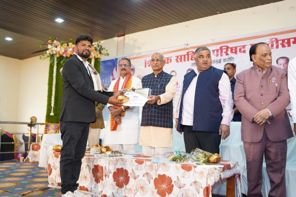 इस अवसर पर सहायक शिक्षक लक्ष्मण बांधेकर, शासकीय प्राथमिक शाला रहमान कापा, विकासखंड पंडरिया, जिला कबीरधाम को उनकी साहित्यिक साधना एवं रचनात्मक योगदान के लिए सम्मानित किया गया। उन्हें प्रशस्ति पत्र, मोमेंटो, शाल, श्रीफल तथा उनकी कृति “एक पेड़ मां के नाम” (गोल्डन बुक ऑफ वर्ल्ड रिकॉर्ड में दर्ज) भेंट कर सम्मान प्रदान किया गया।