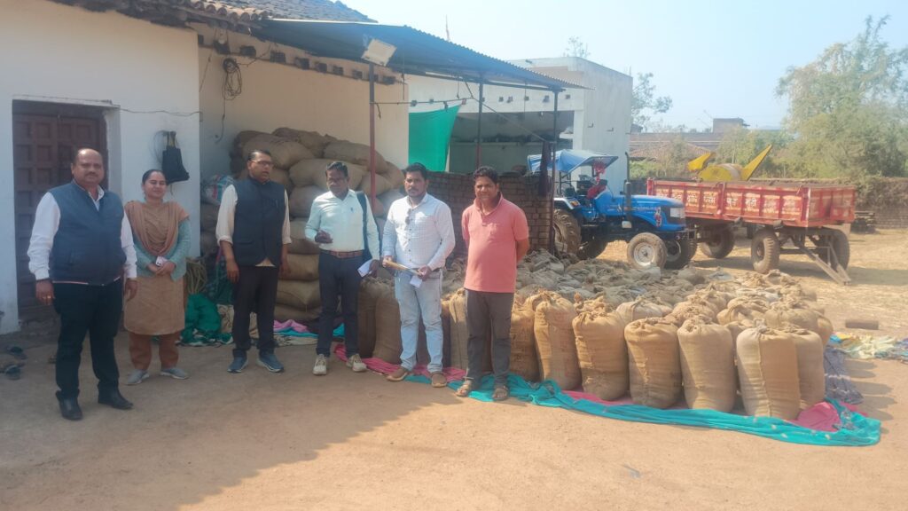 टीम द्वारा ग्राम खुरमुड़ी निवासी कृषक त्रिलोक चंदेल पिता बेदुराम चंदेल के निवास पर जाकर निरीक्षण किया गया। कृषक का किसान पंजीयन कोड TF6717102315605 एवं टोकन क्रमांक TK42006601252601511 है, जो दिनांक 16-01-2026 के लिए जारी किया गया है। भौतिक सत्यापन के दौरान कृषक के घर आँगन में कुल 116.80 क्विंटल धान (292 बोरियां) उपलब्ध पाया गया, जबकि कृषक द्वारा 176 क्विंटल का टोकन जारी कराया गया था। इस प्रकार टोकन जारी मात्रा की तुलना में लगभग 60 क्विंटल धान कम पाया गया।