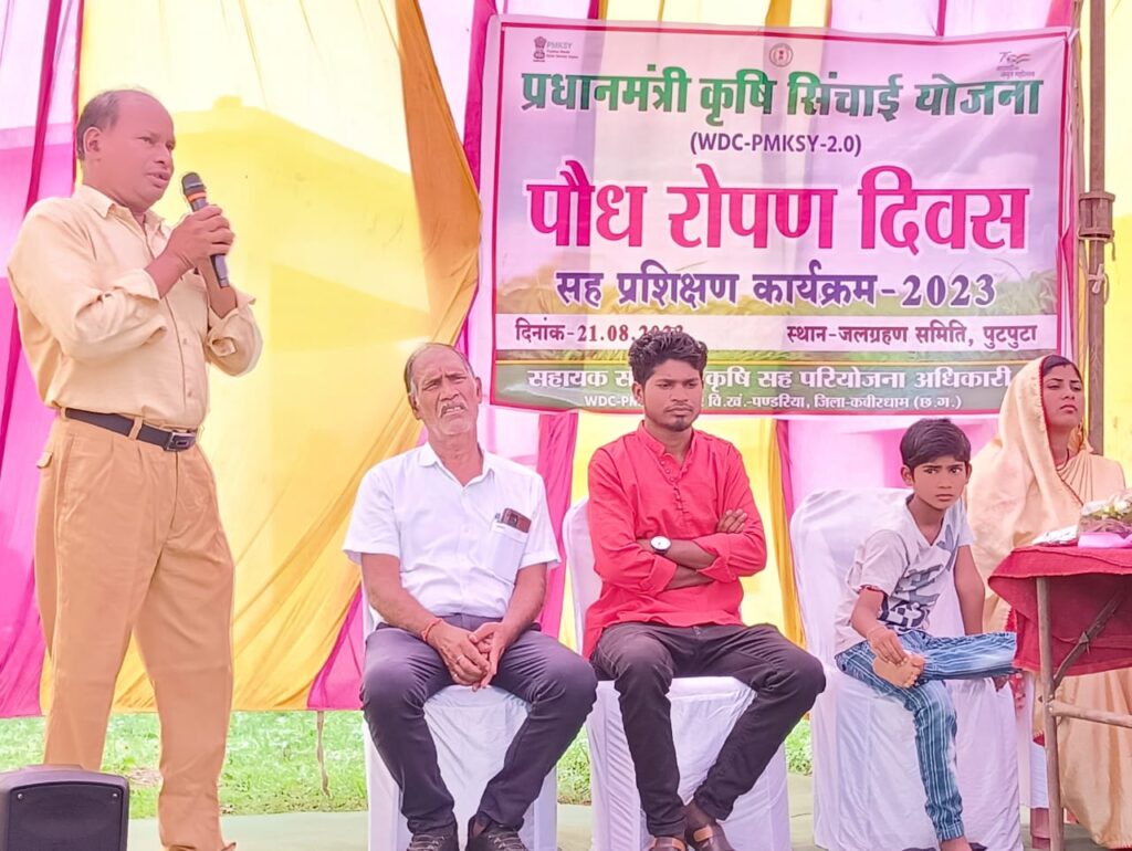 प्रधानमंत्री कृषि सिंचाई योजना WDC 2.0/2 पंडरिया योजना अंतर्गत पौध रोपण दिवस सह प्रशिक्षण कार्यक्रम ,परियोजना अंतर्गत संचालित जलग्रहण समिति-पुटपुटा में आयोजित ।