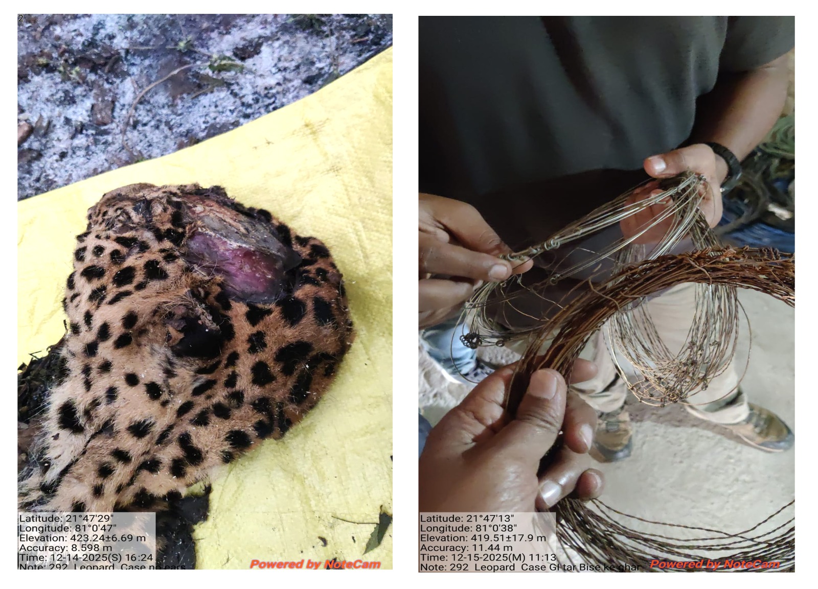 घटना की गंभीरता को दृष्टिगत रखते हुए तत्काल डॉग स्क्वॉड टीम को मौके पर बुलाया गया। प्रशिक्षित श्वान की सटीक निशानदेही पर घटना स्थल से लगभग 400-500 मीटर दूर स्थित दो मकानों से कुल 21.300 कि.ग्रा. जी.आई. तार जप्त किया गया, जो वन्यजीव शिकार में प्रयुक्त होने की आशंका है। साथ ही मृत तेंदुए के सिर का सड़ा हुआ भाग, रीढ़ की हड्डी, पैर एवं पूंछ जप्त कर वैज्ञानिक परीक्षण एवं आगे की जांच हेतु सुरक्षित किया गया है। प्रकरण से जुड़े अन्य संदिग्धों एवं ग्रामीणों से भी सघन पूछताछ की जा रही है।